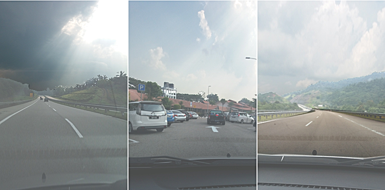 Kg. Sertik. Seterusnya touch ‘n go di Tol Karak. Lebuh raya Karak agak berliku-liku. Kelihatan mentari di puncak